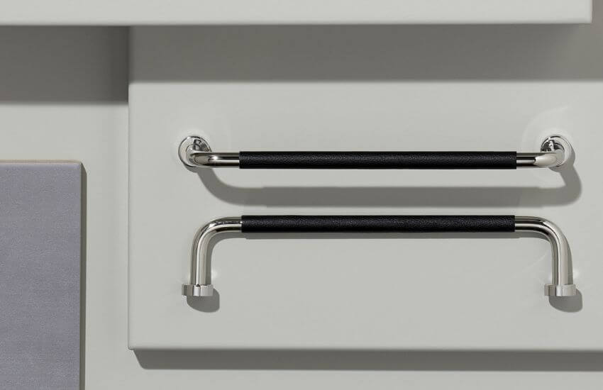 Leather is not only a robust and durable material, it also provides a sense of luxury. Leather handles become more beautiful over time and develop a unique patina that makes each handle distinctive. We have handles in pure leather, but also leather-lined and leather-wrapped handles where you get a beautiful contrast between different materials. A significant advantage of leather handles is that they provide a soft and comfortable feel when you open your doors and drawers. In summary, leather handles combine aesthetics, durability, and a unique character, making them an excellent choice for those seeking high-quality and stylish interior design.High-quality leather handles