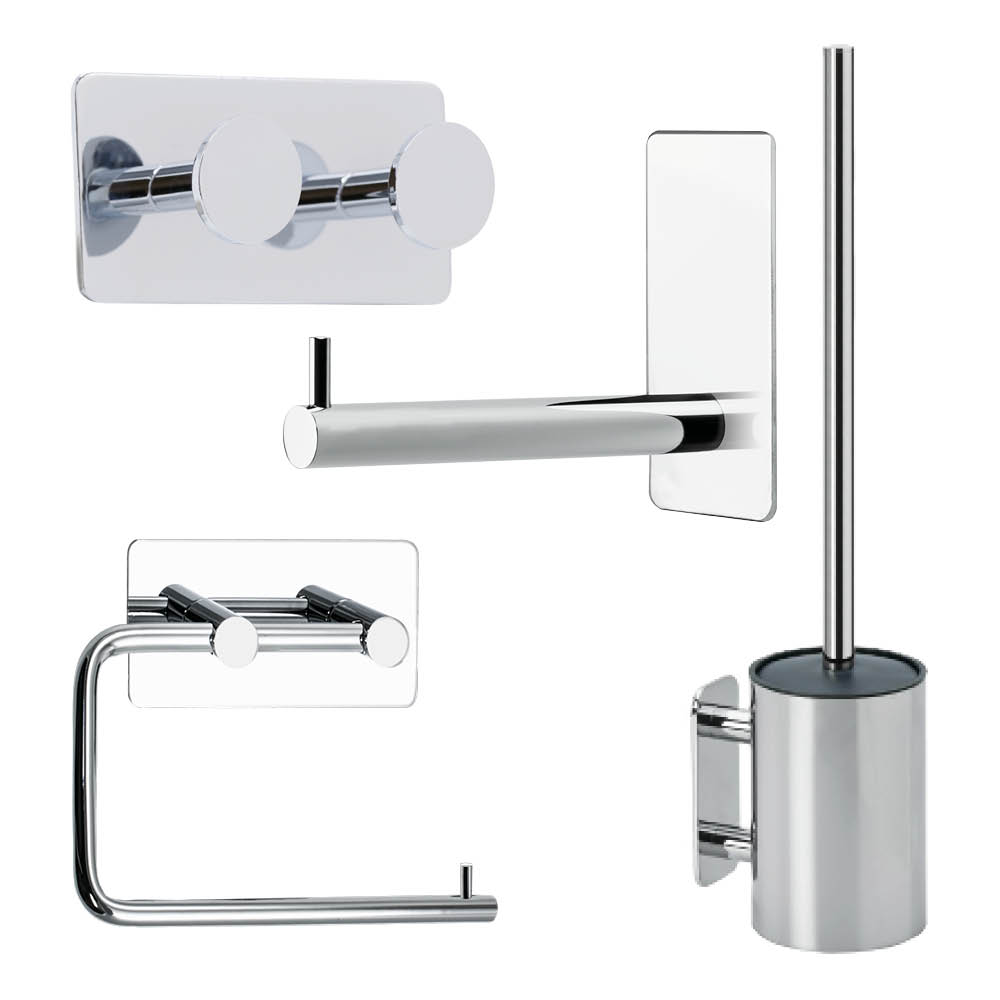 The bathroom kit Base 210 has everything you need for your new bathroom or if you want to renew your existing bathroom. Base 210 is one of our series of bathroom accessories, which are completely made of stainless steel. All products have a self-adhesive tape on the back of the products, which means that they can be mounted without drilling. Bathroom kit Base 210 is available in Chrome, stainless steel, matte black and polished brass.