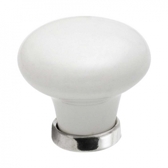 Knob 24136 is a white porcelain knob. Available in three different designs at the foot of the bud; chrome, tin and brass.