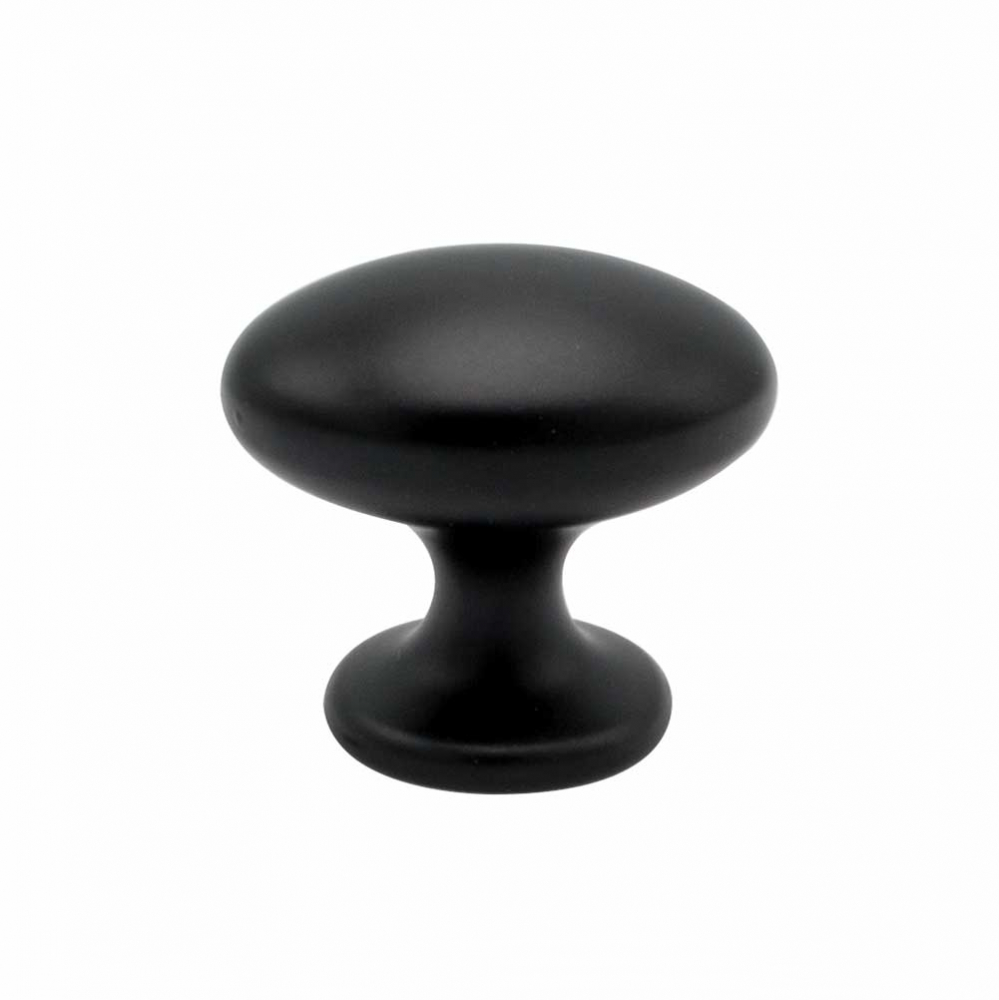 Cabinet knob 401 in matte black is an oval-shaped knob in a country style that fits perfectly in a classic or country kitchen. Knob 401 is part of the Beslag Designs Care range, which is a series of knobs and handles which are protected from a coating of bacteria through a surface treatment with antibacterial properties. This reacts and kills bacteria on the painted surface with as much as 85% in 15 minutes and 99.5% in 2 hours. A more hygienic product results in the number of transmitted bacteria being reduced both to the user and products in its immediate environment.