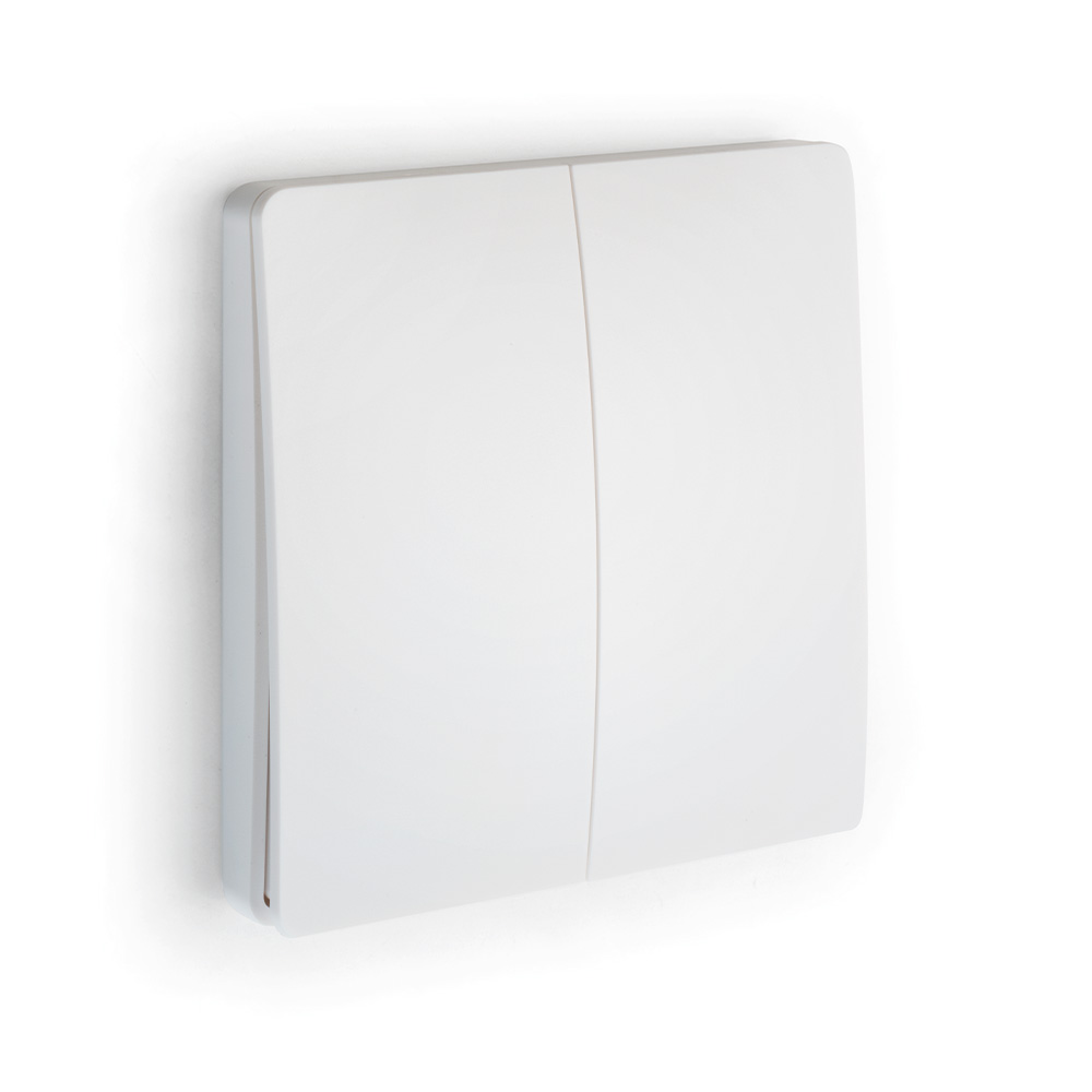 Kiny is available in white or black finish, and in two variants: single or double. Single is a single-channel kinetic switch, and double is a two-channel kinetic switch. Kiny can be screwed in place or attached with the included adhesive tape.