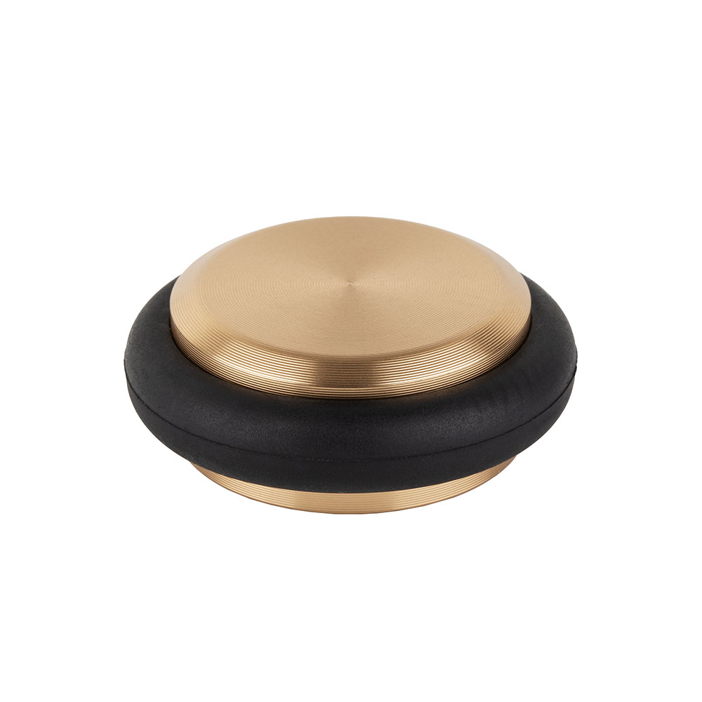 Low is a discreet round door stopper in brushed brass, with a height of 17mm, available in two sizes: 48mm & 68mm in diameter. The door stopper is equipped with a rubber ring to protect the door.