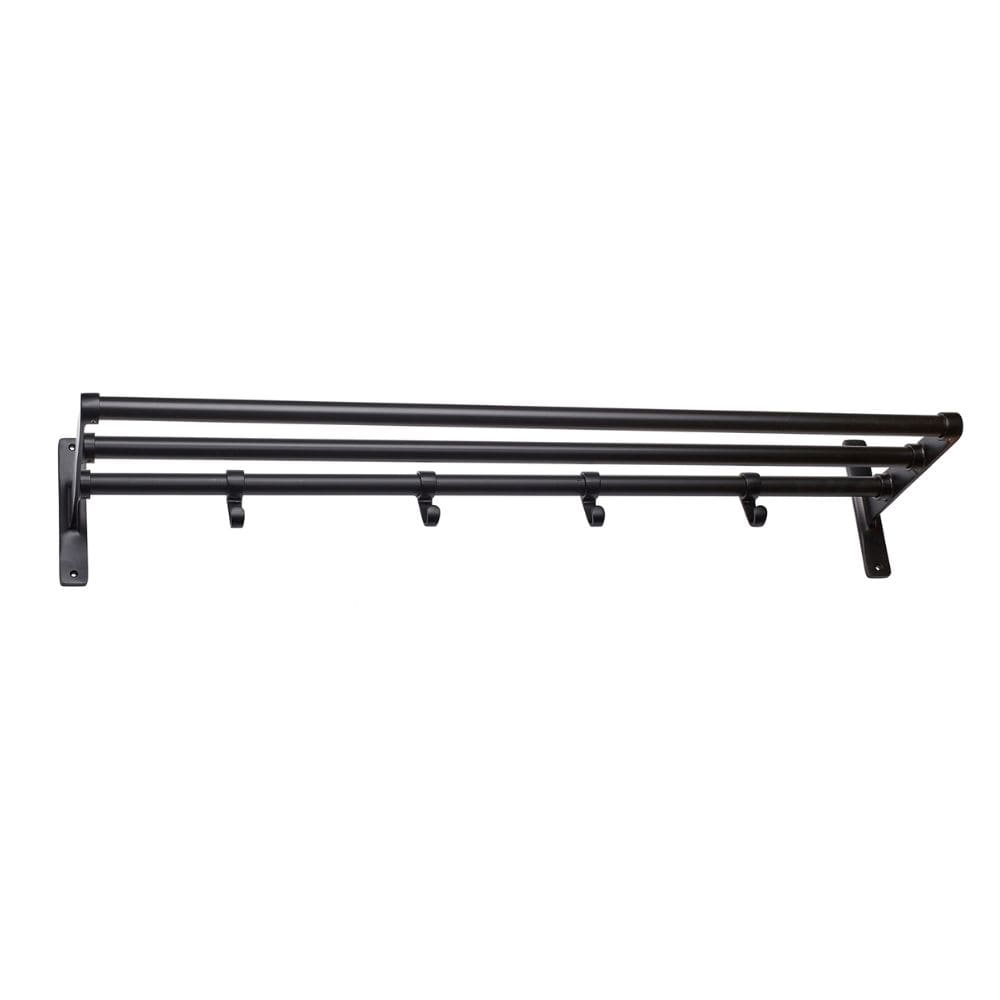 Elevate your hallway with this elegant hat rack that blends Scandinavian simplicity with clever functionality. With side panels and hooks in black aluminum, the rack has a modern look that pairs beautifully with the three black-finished round rods. This combination ensures a sturdy build and a stylish, inviting atmosphere.