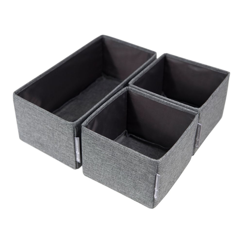 This practical storage solution consists of three parts – one larger box and two smaller ones – perfect for organizing everything from underwear and socks to accessories and small garments. The set comes in a soft grey tone that blends seamlessly into most homes and wardrobes.